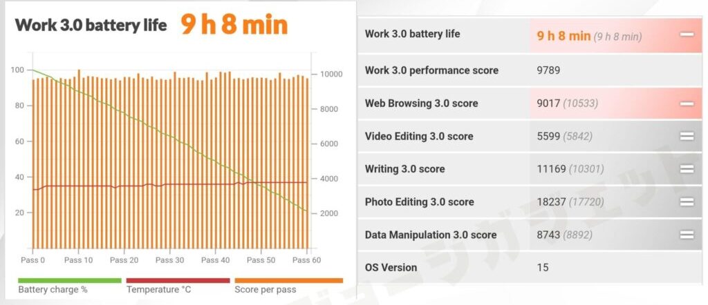 OPPO Reno13 Aのバッテリー性能をアプリ「PCMARK for Android」で計測