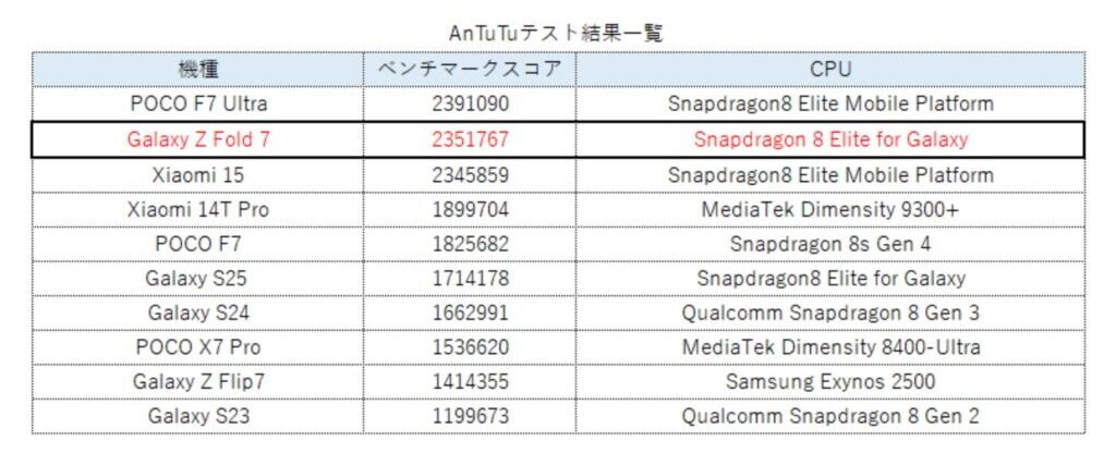 Galaxy Z Fold 7のAnTuTuスコア【235万点超え】