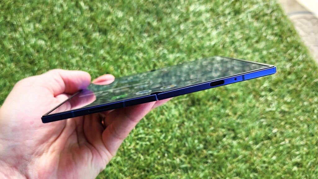 Galaxy Z Fold 7の最大の魅力は、なんといってもその洗練されたデザインと驚異的な薄さ。