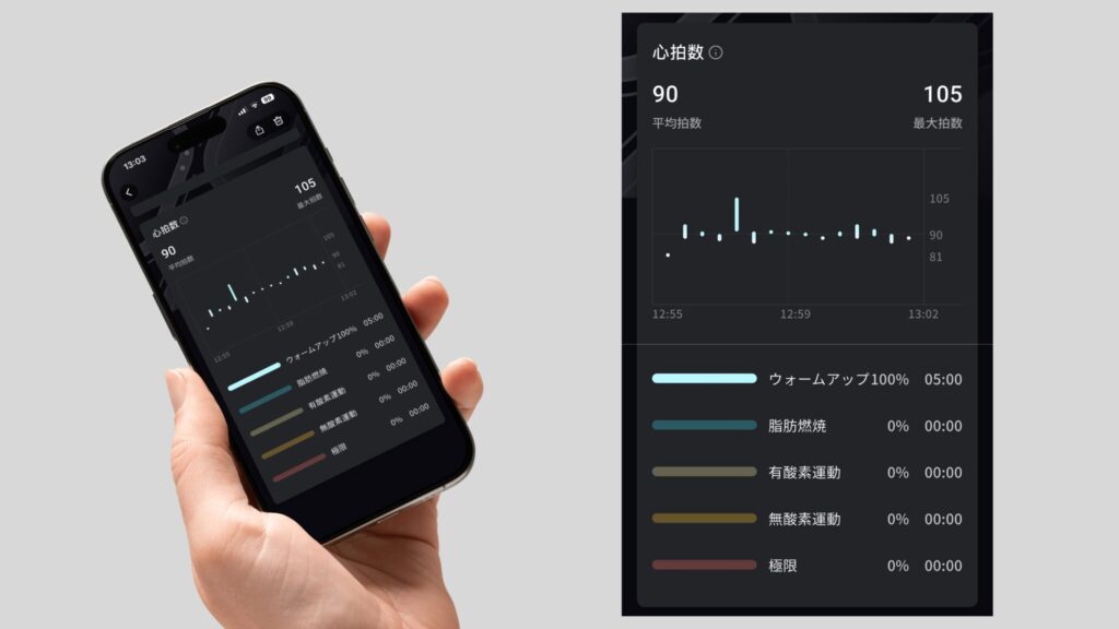 | 睡眠段階 | 〇 | レム・浅い・深い睡眠を分析 |