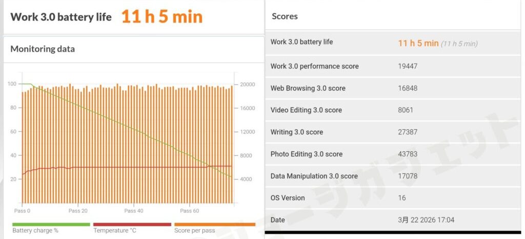 | Xiaomi 17 Ultra | 11時間5分 | 6,000mAh |